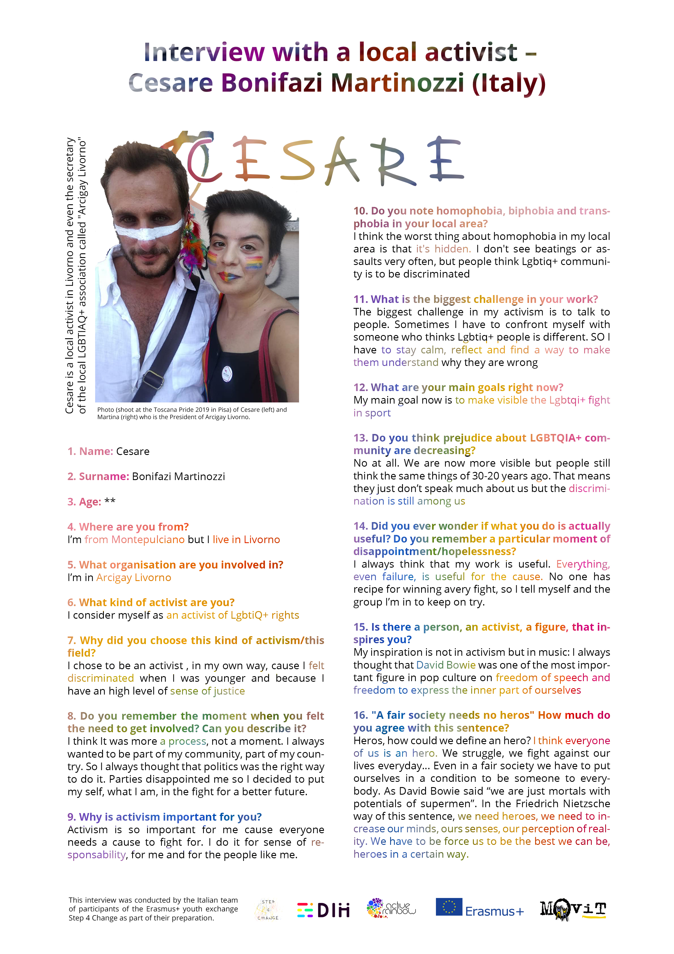 Here you can find the interview that the Italian team of participants of the youth project Step 4 Change conducted with a local activist from their area. You can find a link to the pdf of this interview at the bottom of the page.