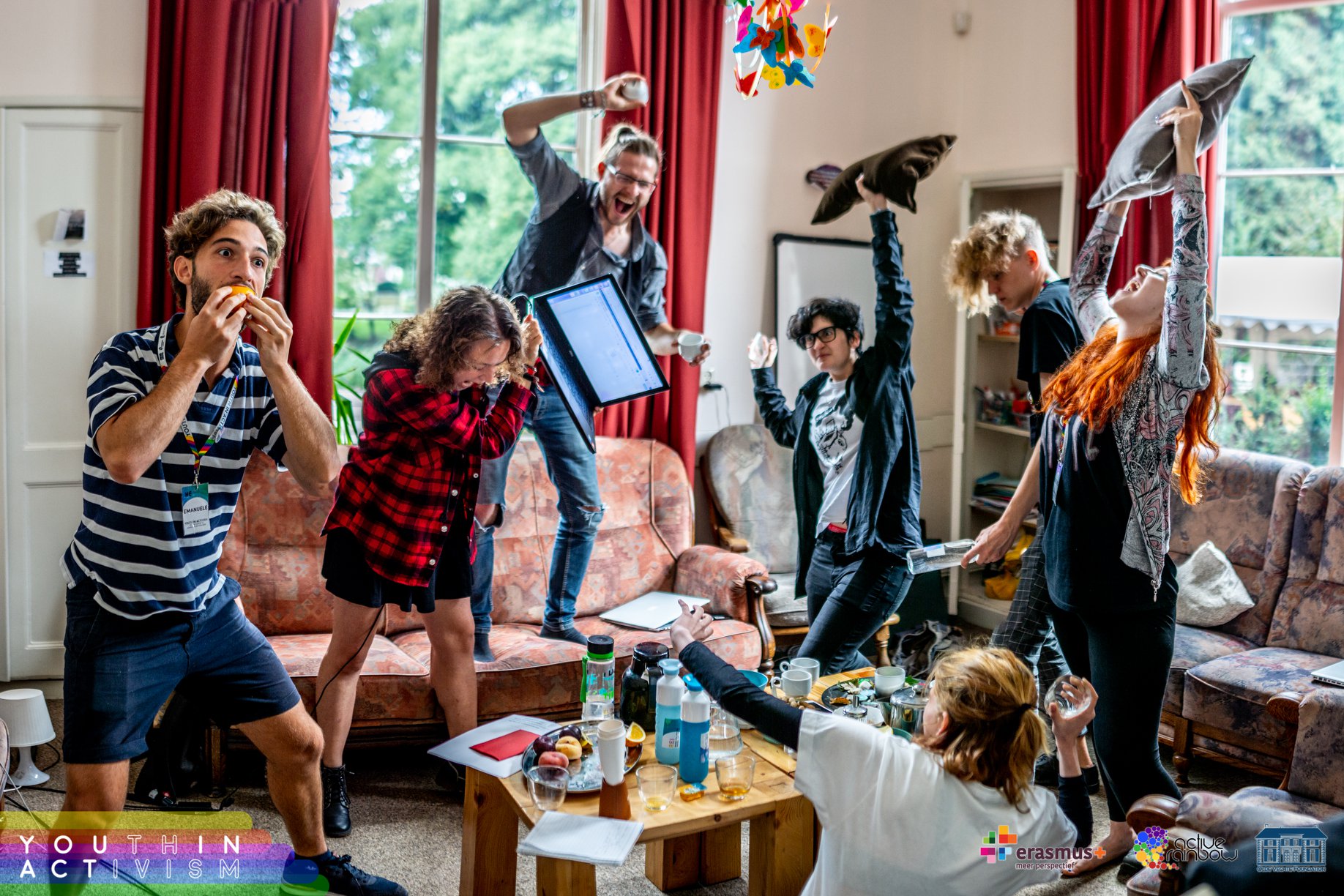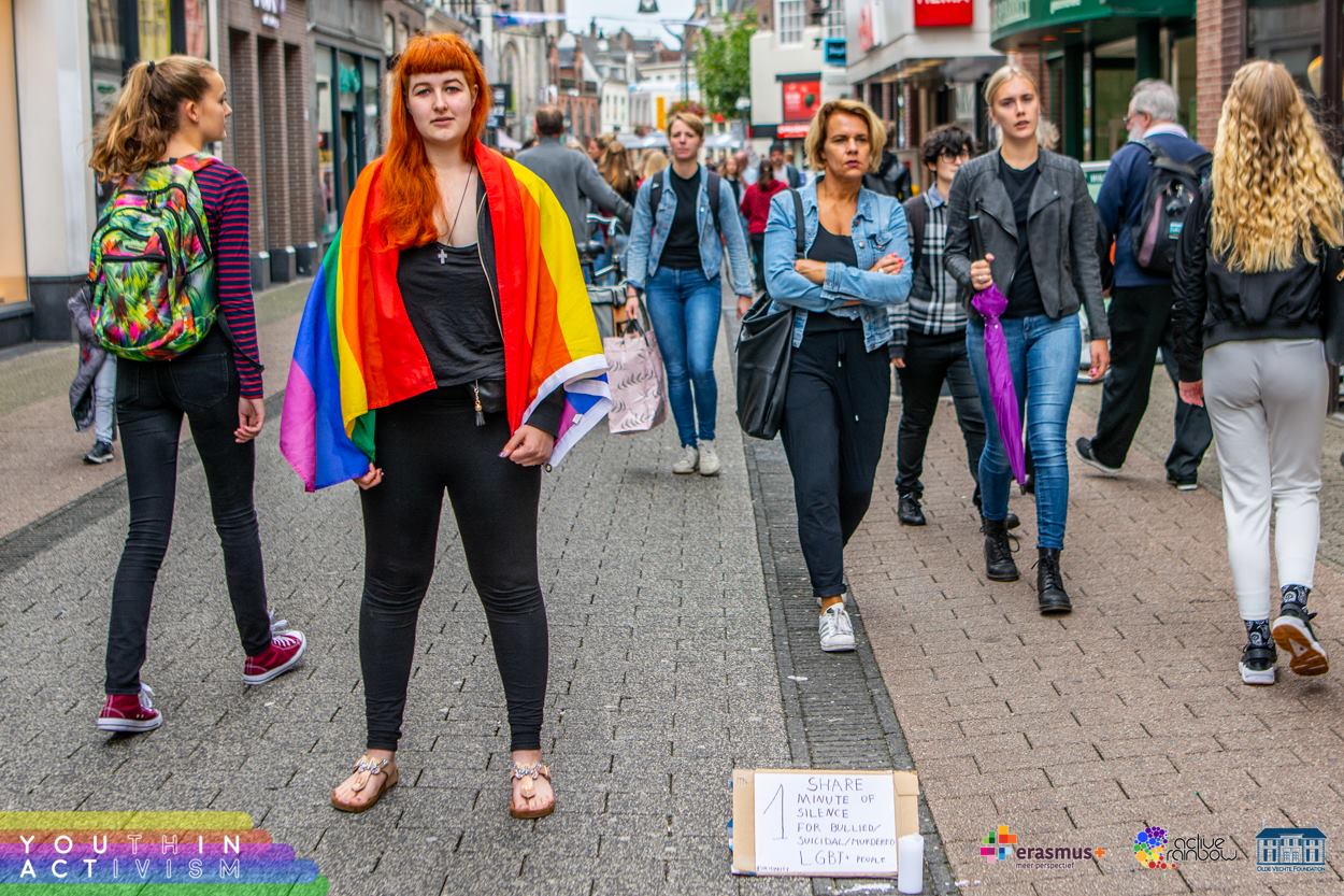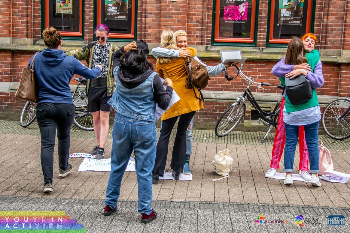 Avgusta 2018 se je pet udeleženk_cev iz Slovenije udeležilo mladinskega projekta YOUth in ACTivism v Ommnu na Nizozemskem (na spletni strani si preberi več o projektu in poglej njegove rezultate). Projekt je trajal deset dni in sodelovali so udeleženci iz 8 različnih evropskih držav, glavni temi projekta pa sta bili izdelovanje videoposnetkov za namene spletnega LGBTQIA+ aktivizma ter organizacija in izvedba uličnih akcij. Neformalno izobraževanje je bila glavna metoda dela, vsebino in obliko pa je avtorica projekta Cathy Manousaki opisala kot “nekaj vmes” med mladinsko izmenjavo in treningom.