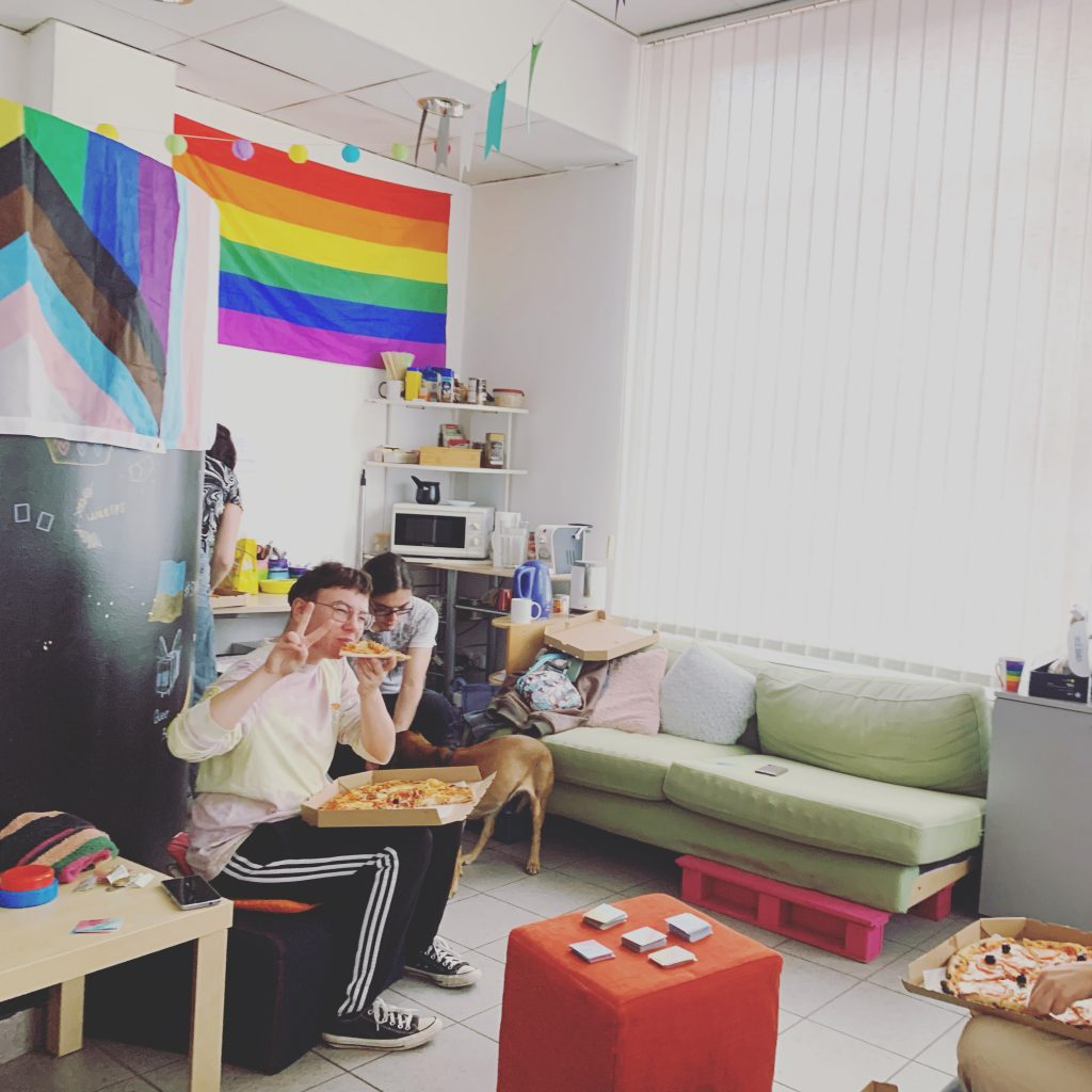 Usually, Kvir na čil is held in English, but participants can communicate between each other in Slovene. The facilitator of the event is our activist Aš.